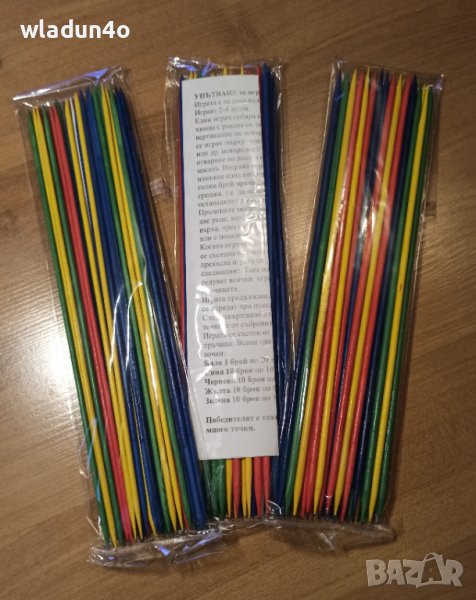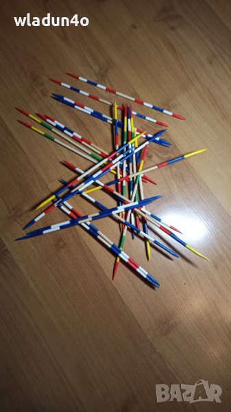 за малки и големи .Целта на играта е да се събират пръчици от купчината разпръснати на гладка повърхност пръчици ,без да се мръднат съседните .Всеки цвят пръчица носи различен брой точки.