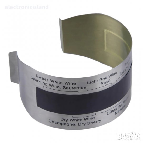 Този дигитален термометър за бутилки вино не използва батерии или електричество , дисплеят се прави по скала от 4 - 24 градуса Целзии чрез прехвърляне на температурата от бутилката към термометъра.