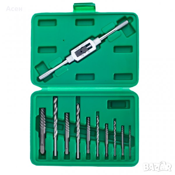 Комплект за демонтиране на винтове и шпилки без използване на ударни инструменти в калъф. Комплектът включва регулируемо което позволява прецизно и ефективно отвиване.