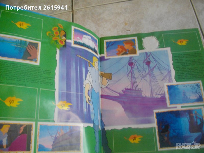 ОПИСАНИЕ на албум Покахонтас: 1996г. Частично запълнен. Отлично ТОП състояние. Залепени общо около приблизително 115 бр. малки и големи лепенки /единични, двойни, троини и четворни/. общо за албума трябват 232 единични лепенки. Размери на албума: 270х230мм. Гланцови корици и гланцови страници. Много запазен вид на албума. Почти нов. Цена 249 лв.