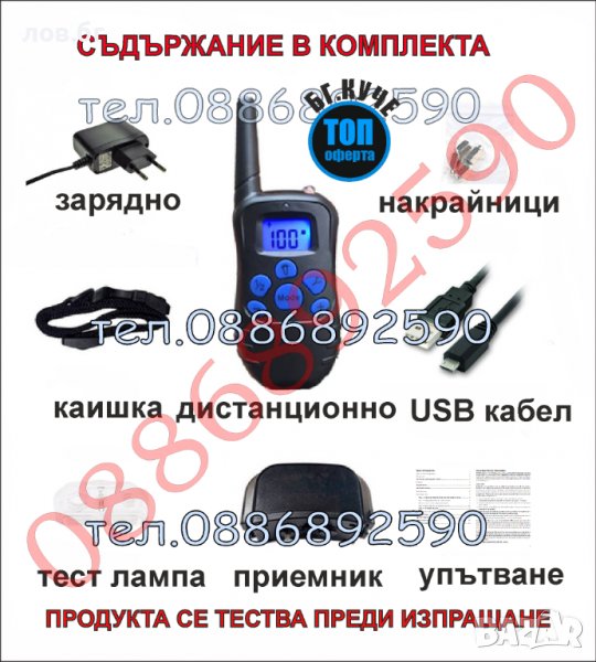 - Нашийникът е ВОДУОСТОЙЧИВ Клас IP65