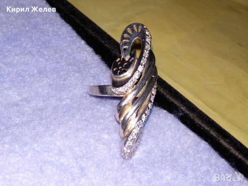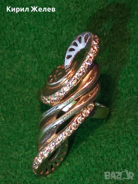 ЕЛЕГАНТЕН МОДЕН ПОЗЛАТЕН СРЕБЪРЕН ПРЪСТЕН СРЕБРО 925 с ФАСЕТИРАНИ ЦИРКОНИ ДИЗАЙНЕРСКО АРТ БИЖУ 34368