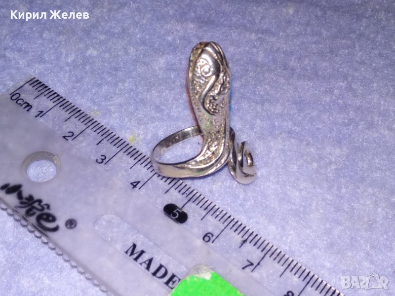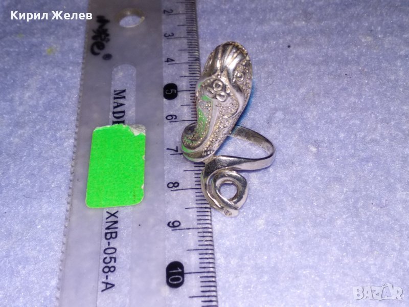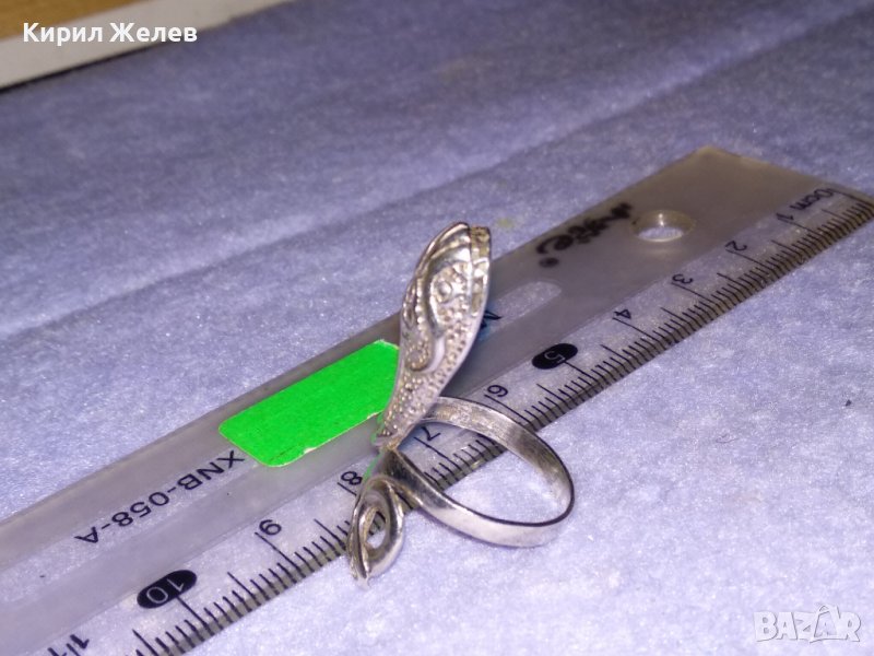 ЗМИЕВИДЕН СРЕБЪРЕН ФИГУРАЛЕН РЯДЪК АРТ ПРЪСТЕН СРЕБРО 925 с БЯЛА ПОЗЛАТА ФЕШЪН БИЖУ 35018