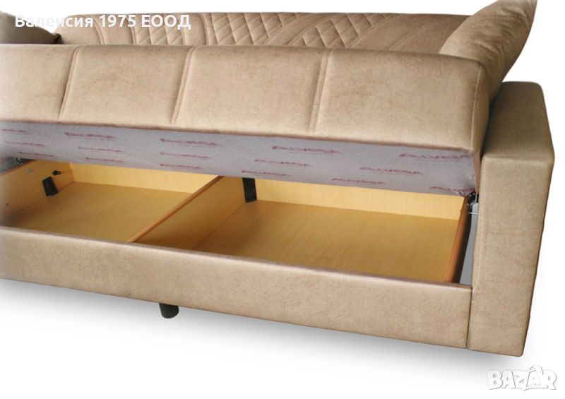 Диванът е със седалка с пружинен пакет бонел, ракла и разтегателен механизъм клик-клак;