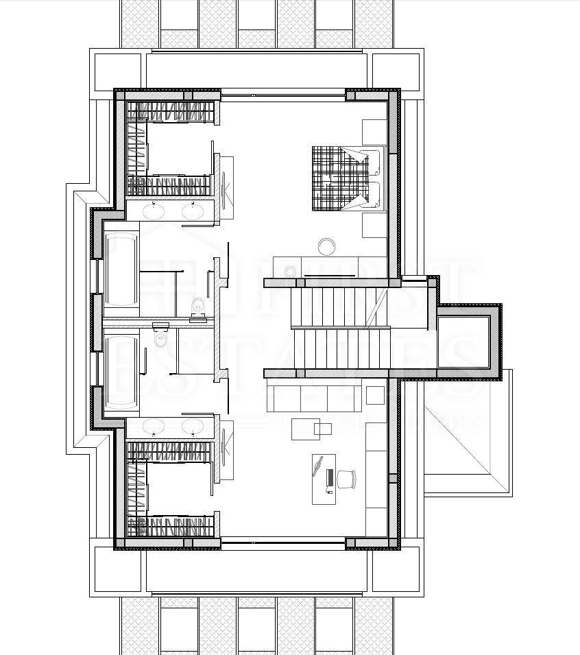 First Estates Ви представя нов затворен комплекс от 20 самостоятелни къщи, разположени върху парцел от 25 000 кв.м, всяка с обща площ от 653 кв.м. и с изцяло озеленени дворове, които ще варират между 715 кв.м. и 1400 кв.м. и са оборудвани с поливни системи.