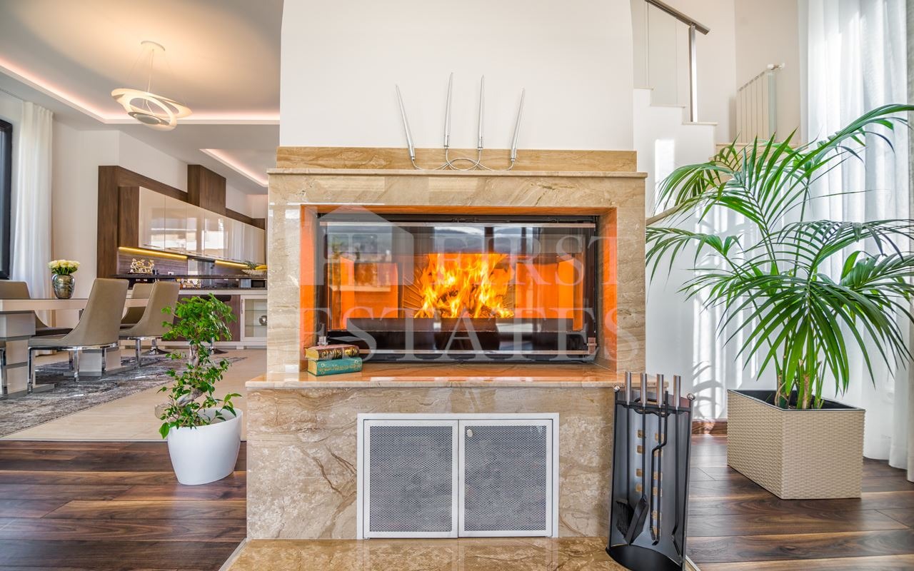Разпределението е хол, трапезария и кухня, две веранди и 4 спални, всяка със самостоятелен санитарен възел, гардеробна и тераса. За да е още по-удобно всяка къща разполага с гараж за две коли и 4 външни паркоместа. На покрива има 360 панорамна тераса, подходяща за барбекю и слънчеви бани. Терасата с площ от 62 кв.м е комплимент към клиентите и не е включена в цената.