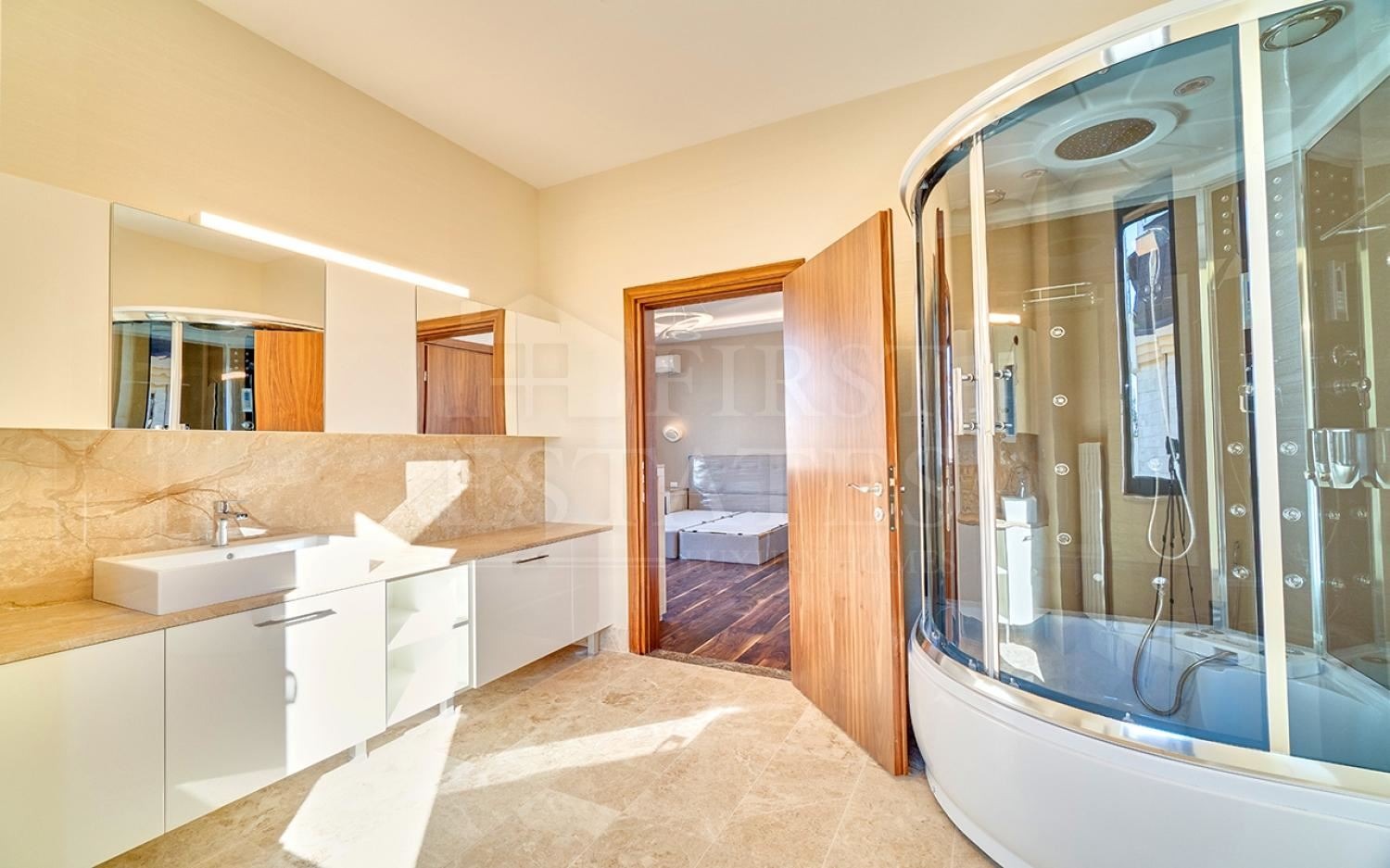 Общата площ на къщата е 652 м2. Височината на стаите е между 3,20 и 3,50м. Всяка къща разполага с 4 спални - по 25 м2 всяка, 6 бани; балкон, баня и дрешник във всяка спалня. Покривната тераса от 62 м2 е с 360o панорамна гледка, барбекю и джакузи. Всяка къща разполага с асансьор, фитнес, парна баня, сауна и сервизни помещения. Уникалното озеленяване разполага с поливна система.