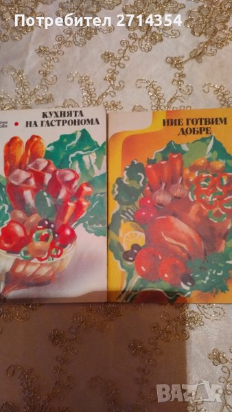 готварски книги събирани през годините, книгите са от преди 90 те години./ Книга Съвременна кухня за двама 8 лева/ Книга супи и сосове 6 лева /Книга рибата и рационално и диетично хранене 6 лева/ Книга 200 рецепти за риба 8 лева/ Книга Ястия от местни полуфабрикати и колбаси 10 лева/ /Книга Изкуството да готвим 20 лева/Книга Предястия 6 лева/Книга Календаръ по готварство 55 лева/ Книга съвременна кухня 100 лв/Книга Кухнята на гастронома 8 лева/ Книга Ние готвим добре 8 лева/ / Книга Наша кухня 20 леа/Книга Кулинарен спектър 10 лева/Книга Нашата и световна кухня и рационално хранене 10 лева 🙂📚🍀за повече информация пишете.