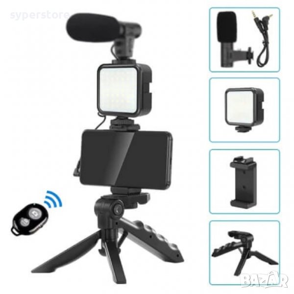 Стойка за телефон за ръка, за видео, с микрофон и светкавица Digital One SP00636 ay-49 Video Making Kit