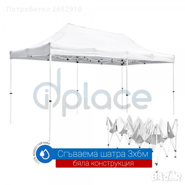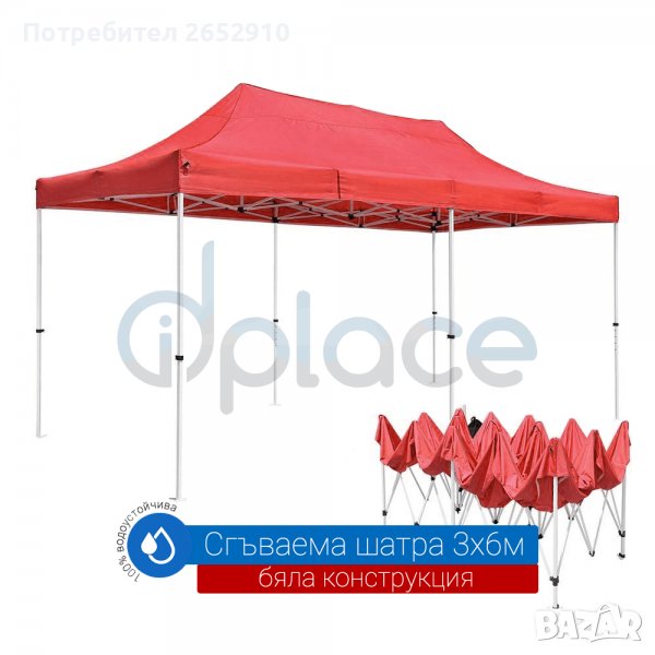 Шатри сгъваеми ЛУКС СУПЕРЛУКС 2х2 2х4 3х3 3х4,5 3х6м.Метални, непромокаемо платнищеЦена209лв/106,86€