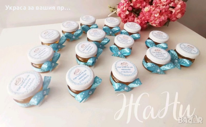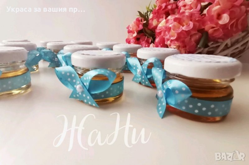 Бурканче с мед подаръчета за гостите на бебешка погача → Обява 39521832