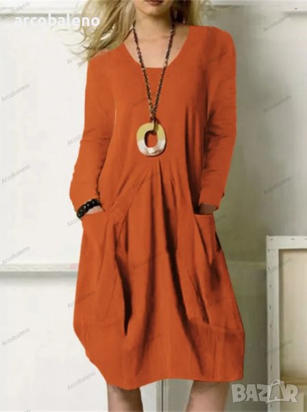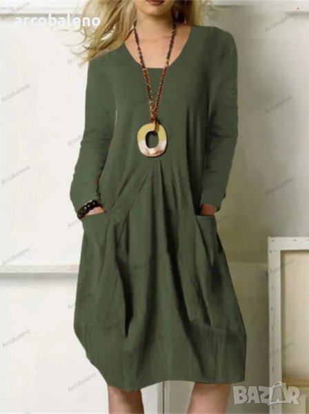 Свободна дамска ежедневна едноцветна дълга рокля с джоб, 4цвята
