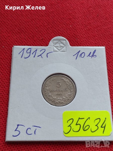 МОНЕТА 5 стотинки 1912г. ЦАРСТВО БЪЛГАРИЯ СТАРА РЯДКА ЗА КОЛЕКЦИОНЕРИ 35634