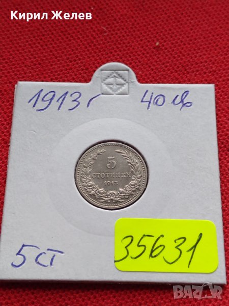 МОНЕТА 5 стотинки 1913г. ЦАРСТВО БЪЛГАРИЯ СТАРА РЯДКА ПЕРФЕКТНО СЪСТОЯНИЕ 35631