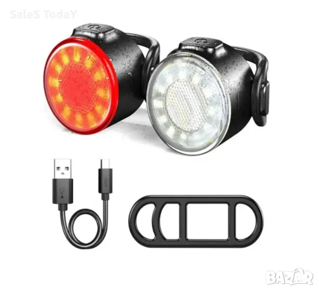 Комплект светлини за велосипед, предна бяла и задна червена.