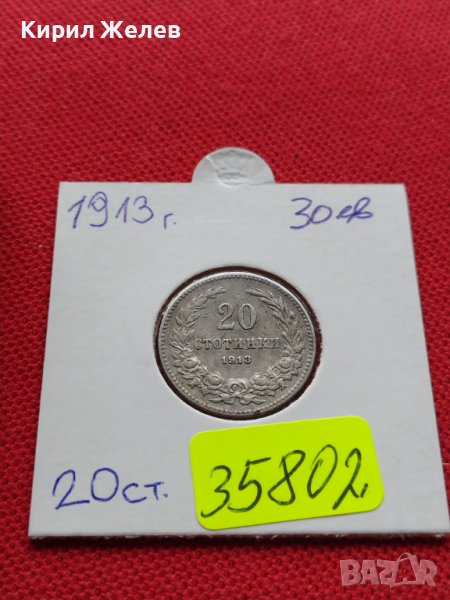 МОНЕТА 20 стотинки 1913г. ЦАРСТВО БЪЛГАРИЯ УНИКАТ ПЕРФЕКТНО СЪСТОЯНИЕ ЗА КОЛЕКЦИОНЕРИ 35802