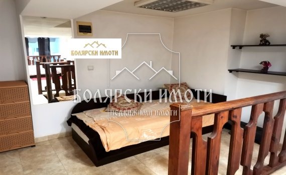 Ниво 1: коридор, голямо помещение с обособен кът за релакс, кът за хранене и кухненски такъв; баня/тоалетна; вътрешно стълбище към ниво 2. Ниво 2: едно двойно легло и две единични, разположени в различни кътчета на нивото; мокро помещение/ килер. Мезонетът е изцяло обзаведен и оборудван с всички необходими мебели и електроуреди: готварска печка с абсорбатор, хладилник, пералня, кафе машина, два телевизора, бойлер. Поставен е и голям инверторен климатик, който успява да стопли/ охлади цялото помещение безпроблемно. Заповядайте на оглед! Реф. :В-2416