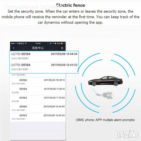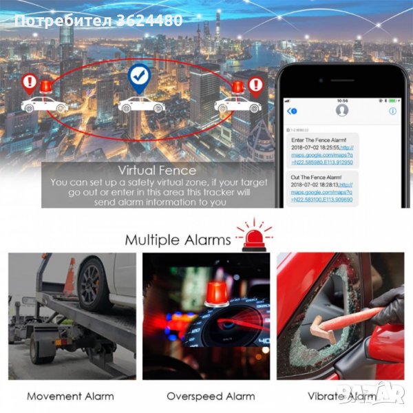 - Команди и информация за местонахождението се изпраща чрез SMS