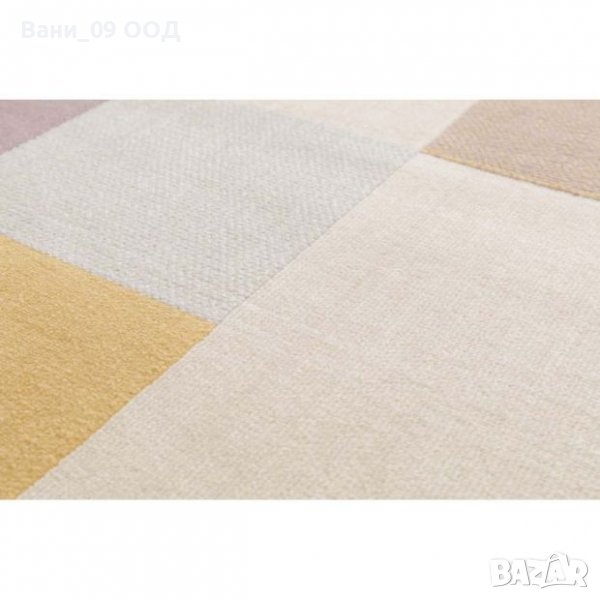 Цветен килим с мотив на квадрати в комбинация от бежово, жълто и лилаво, 120/170 см