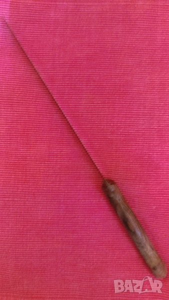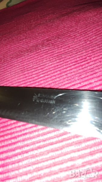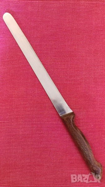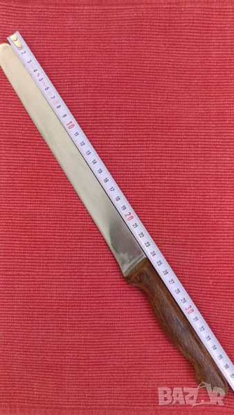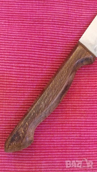 Стар магазинерски, кухненски нож Сърп и чук, Велико Търново. Размери :дължина острие 24 см,дръжка 14 см, ширина на острието 25 мм, дебелина на острието 2 мм. Дървена дръжка, в отлично състояние.