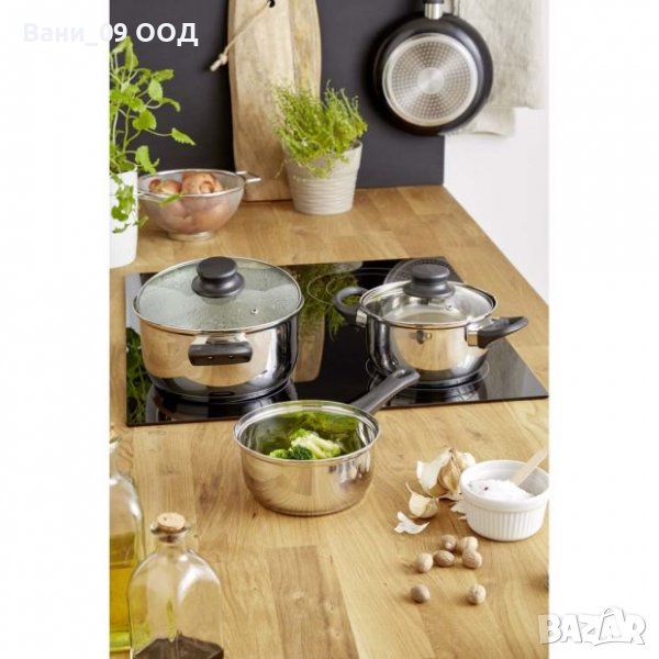 Комплектът съдържа основните съдове, необходими за вашия кулинарен кът. С тях бихте могли да дадете добър старт на готварството в новия дом, както и да освежите кухнята с нещо полезно и по-ново, когато това се налага.