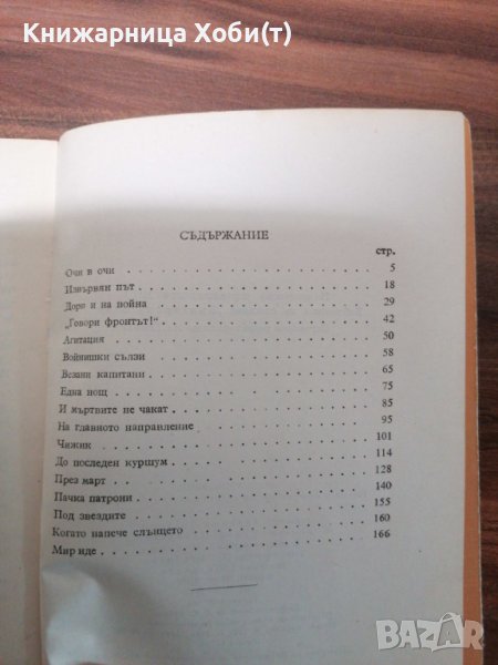 Съдържа разкази и фронтови очерци на Станислав Сивриев . Книгата е отпечатена по нареждане на политическо управление при МНО в Печатницата на Държавното военно издателство към МНО , и е част от Библиотека " Български войн ".