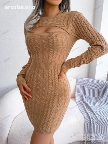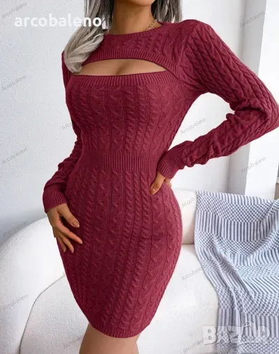 Стилна дамска плетена секси рокля, 3цвята
