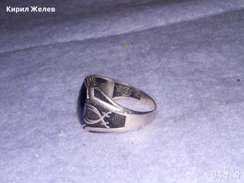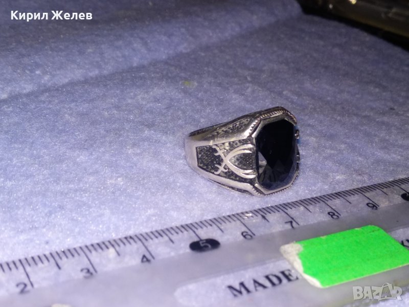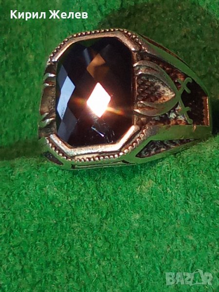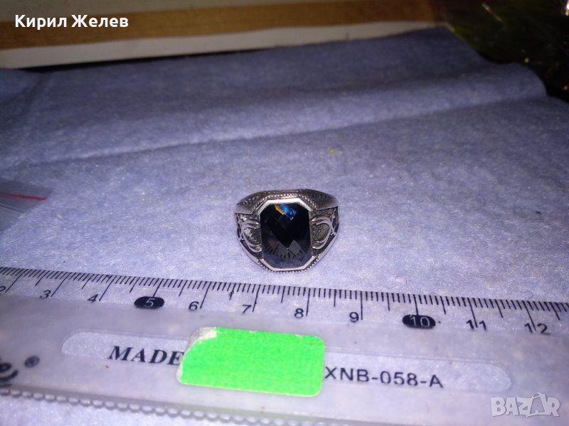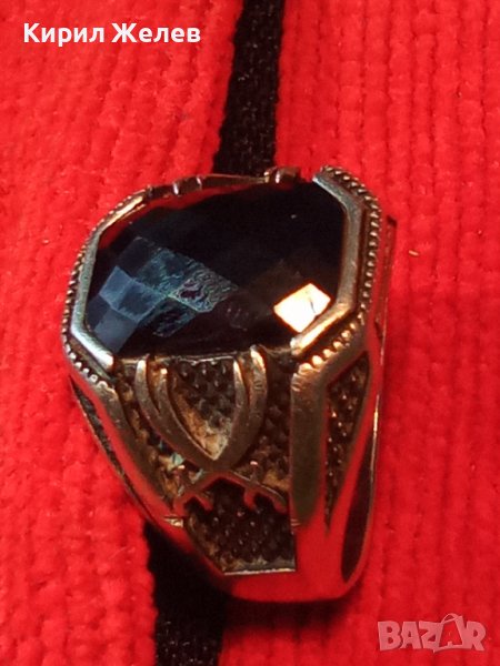 СКЪПОЦЕНЕН АВТОРСКИ СРЕБЪРЕН ПИРАТСКИ ПРЪСТЕН СРЕБРО 925 с НИЕЛО и ОГРОМЕН ФАСЕТИРАН МАРКАЗИТ 36405