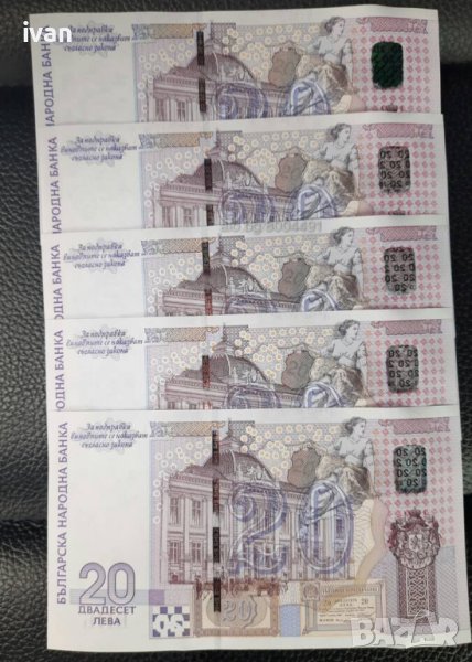 Продавам 5 банкноти от 20 лева емисия от 2005 година. Чисто нови, непрегъвани с поредни номера.Може → Обява 39536712
