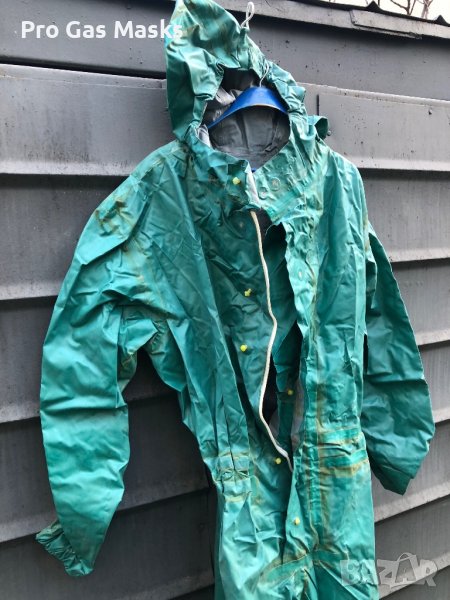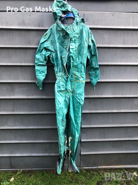 Професионално Защитно Химическо облекло Гумирано Цяло Военно само за 80 лв с чанта за съхранение. Ново с качулка и ботуши. Може да ползва многократно. Предлагаме и противогаз отделно по 25 лв за брой. Предпазва и защитава срещу прах, аерозоли и течни отровни вещества, химически материали и всякакви отрови. Също така предпазва кожата от директен контакт с радиоактивни вещества, киселини и алкали, за подобрена безопасност по време на специализирани промишлени задачи. Използва се в минната индустрия, пръскане на овошки, (например третиране на дървета с пестициди), пръскане срещу насекоми, вредители и много други. Ползва се за градински и професионални цели. За пръскане на овошки и посеви. За