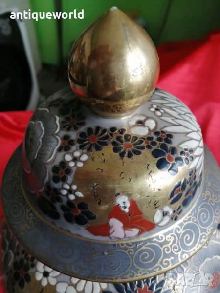 Уникална Оригинална Много Красива Японска Много Голяма Урна , Ваза SATSUMA ,Ръчно Рисувана , Злато. Маркирана! Височина 38 см.