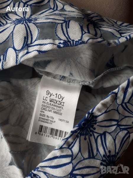 Рокля на нежни сини цветя на прозрачен фон, LC Waikiki, 9- 10 год., 134- 140 см, дълж.80 см, шир.подмишн.35 см, талия 33 см. Има памучна подплата и широк сатенен колан. Отлично запазена, неразличима от нова. Цена- 30 лв.