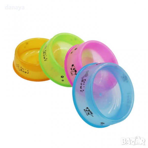 Малка пластмасова купа за храна за домашен любимец. Купа за храна за куче или коте. Цветна хранилка за малки домашни любимци. Изработени от устойчива пластмаса. Купите за храна за домашни любимци се предлагат в различни цветове. Подходящи както за храна, така и за вода.