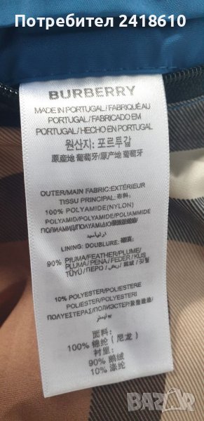 Burberry Mens Down Jacket Slim Fit Size 50/L ОРИГИНАЛ! Мъжко Зимно пухено Яке! Оригинално мъжко плътно зимно пухено яке, обличано два пъти , без забележки !!