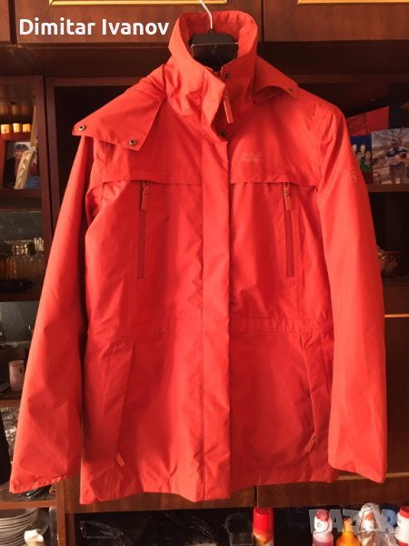 Оригинално дамско яке Jack Wolfskin модел Fairview, чисто ново с етикети. Супер качествено яке за туризъм или всекидневна употреба в града. Напълно водоустойчиво благодарение на първата по рода си технология TEXAPORE ECOSPHERE, която съчетава мембрана и външна материя от 100 % рециклиран материал, което прави якето напълно екологично и щадящо природата. 20000мм воден стълб и паропропускливост 15000g/m2/24h. Супер високо качество на материал и изработка подобаващо на марката подобаващо на марката. Размер S(36/38)