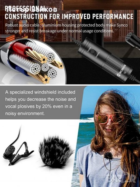 Улавя широкообхватен звук: Използвайки 360° многопосочна кондензаторна капсула, микрофонът Moman S6 Lavalier улавя звук с честотен диапазон от 60Hz до 19kHz еднакво от всички посоки, постигайки отлично представяне при улавяне на детайли, за да представи оригиналния звук. Той ви гарантира, че всичко, което попадне в полезрението ви, ще бъде уловено.
