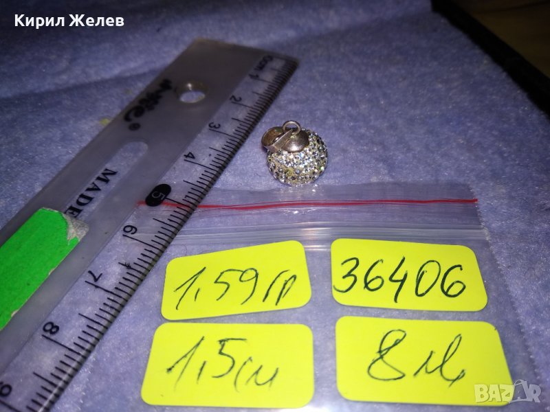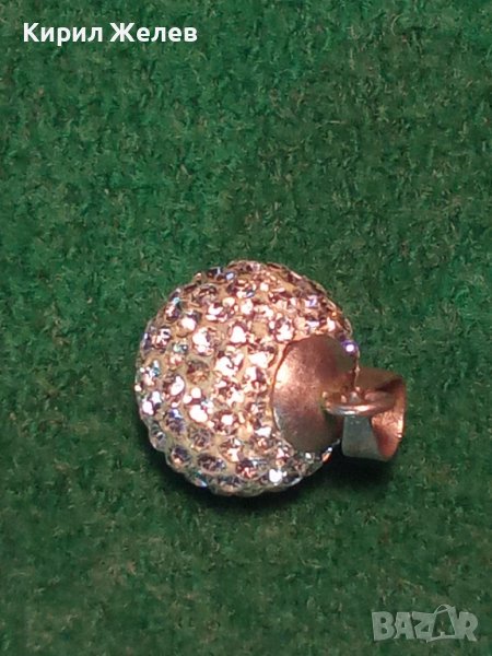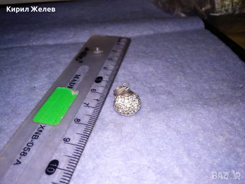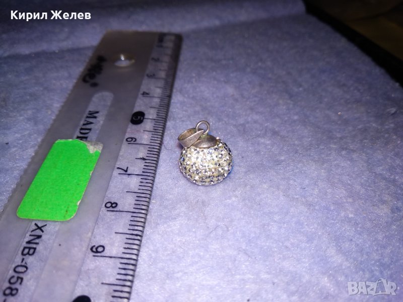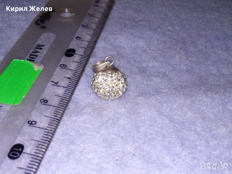 НЕЖЕН СРЕБЪРЕН МЕДАЛЬОН ТОПЧЕ с БЯЛ ЕМАЙЛ и ФАСЕТИРАНИ КРИСТАЛЧЕТА 36406