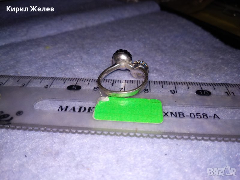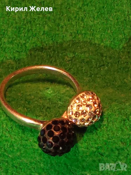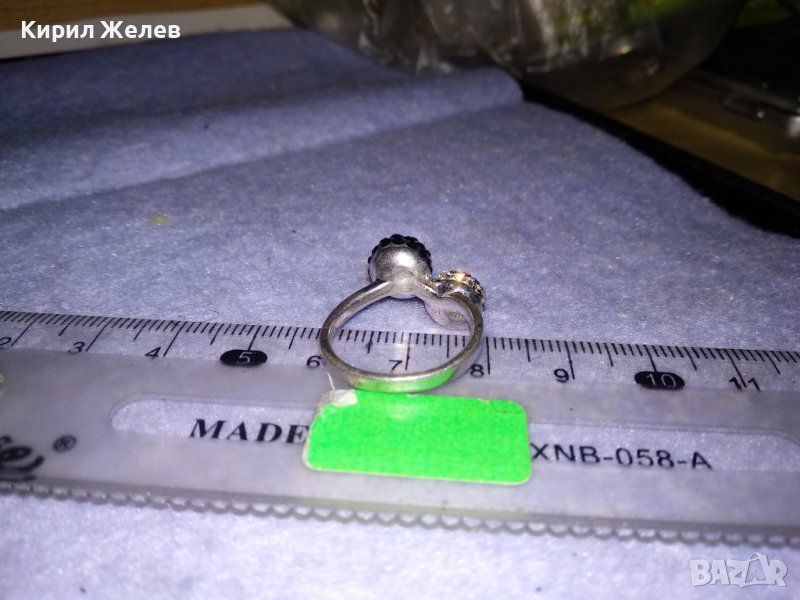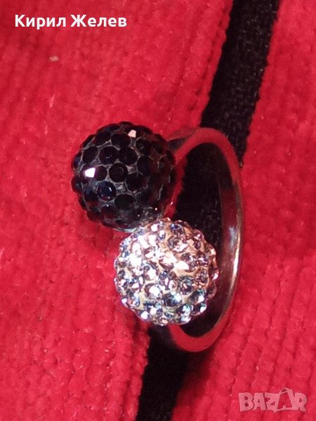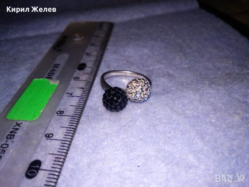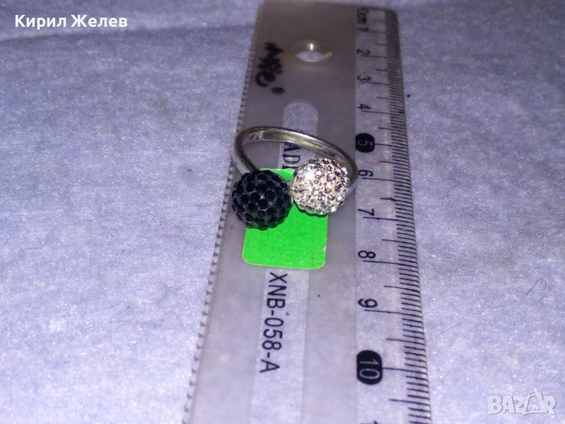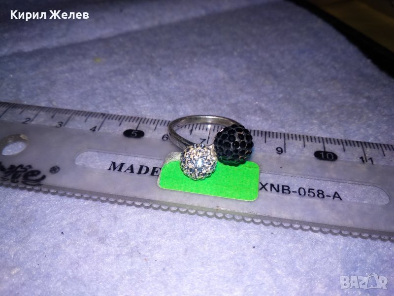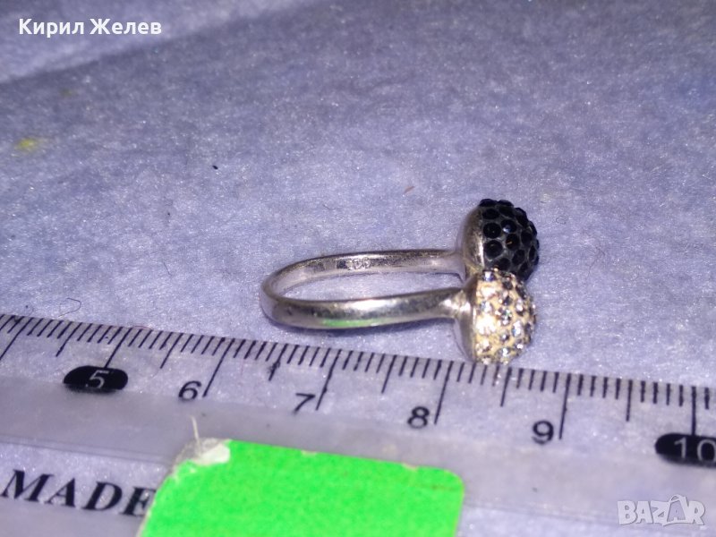 НЕЖЕН СРЕБЪРЕН ПРЪСТЕН ТОПЧЕТА СРЕБРО 925 с БЯЛ и ЧЕРЕН ЕМАЙЛ и КРИСТАЛЧЕТА 36398