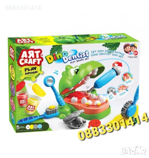 Комплектът включва: 5 кутийки различни цветове моделин, четка за зъби, устройство за кариеси и др.
