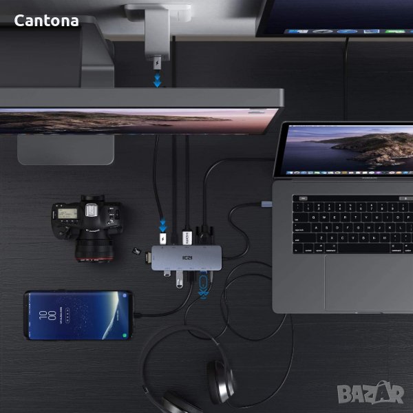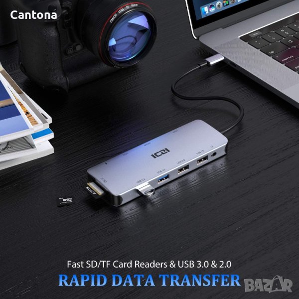 - ICZI USB Type-C хъб е голямо разширение, което отговаря на всички ваши нужди, оборудвано с 1 x HDMI 4K, 1 x VGA 1080P, 2 x USB 3.0, 2 x USB 2.0 порта, 1 x rj45 Ethernet интернет, 1 x 100 W USB C PD порт за зареждане, 1 x 3,5 мм аудио, 1 x SD и TF четец на карти. В допълнение към лаптопите, USB C докинг станцията е съвместима с повечето мобилни телефони Type-C (съвместими с Thunderbolt 3)