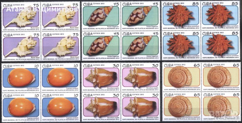 Чисти марки (6 х 4) в карета Фауна Раковини 2012 от Куба.