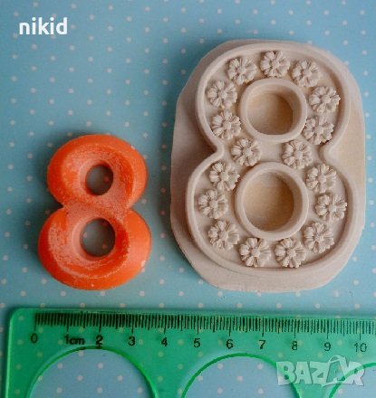 Цифра число 8 Март с маргаритки дълбок силиконов молд форма фондан гипс шоколад декор украса калъп → Обява 39551764
