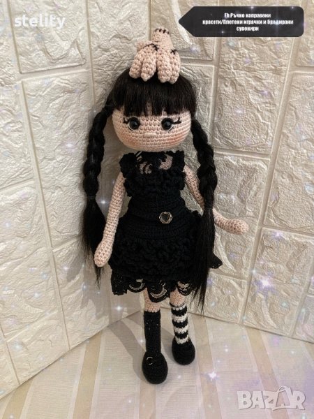 ✅ Висока е около 40 см. Изработена е памучна прежда, има изкуствена косичка за кукли и телена конструкция. Изработва се по поръчка.Ръката "Нещото" не е включена в цената.