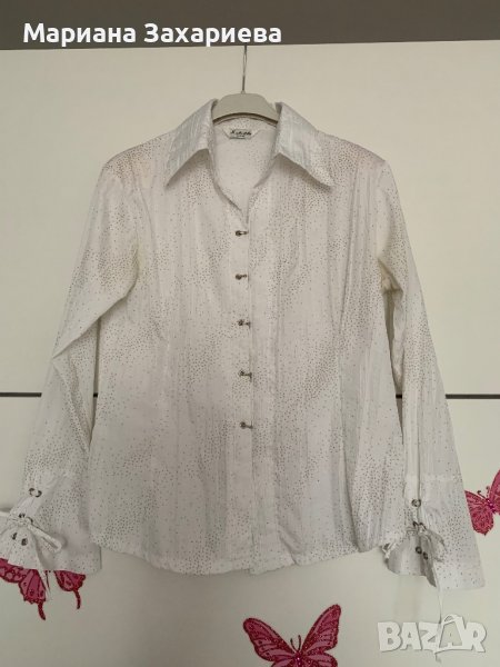 Бяла дамска риза с блестящ ефект, размер S → Обява 39552288