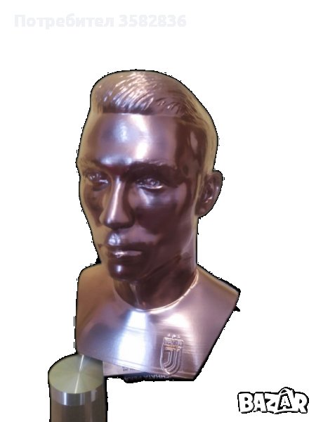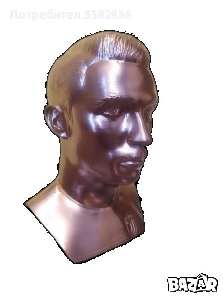 Здравейте, предлагам на вашето внимание бюст на Cristiano Ronaldo. За поръчка ни изпратете съобщение. Материала от, който е изработен бюста е пластмаса но е доста корава. Височината му е 19-20см. Този бюст е в цвят златен хром. Перфектен подарък или сувениер за най - големите фенове на този футболист.