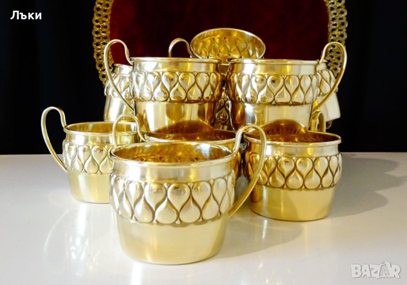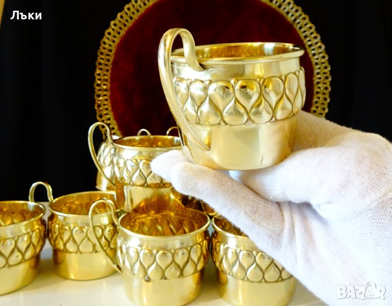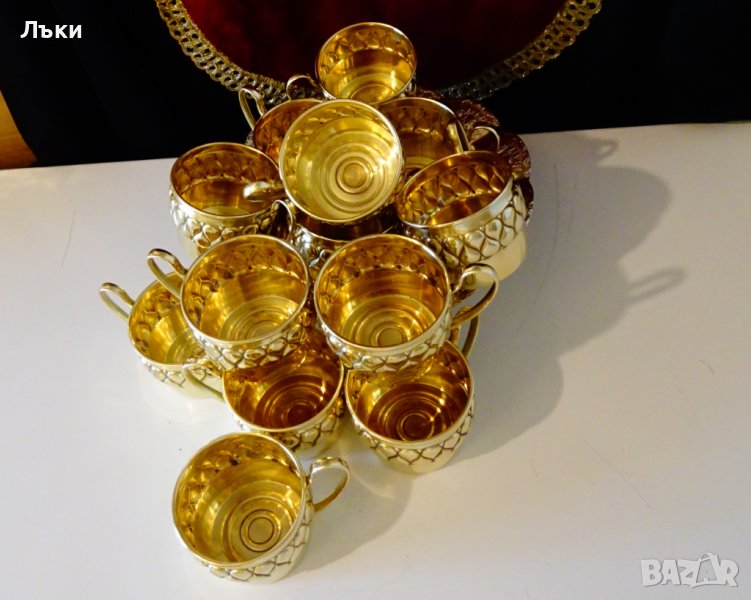изработка от високо качествен месинг с позлата.Чашите са ковани с разкошен