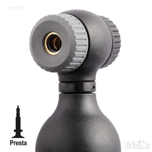 Свързва се с всички видове вентили ( Presta , Shrader , Dunlop ) чрез завиване . Приспособява се към съответния вид чрез двойната глава .