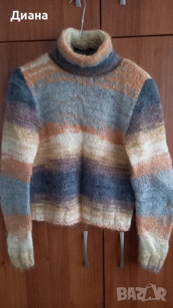 Страхотна нова поло блуза от високачествен топъл пухкав мохер с фина вълнена нишка, ръчно плетена, стои превъзходно. Отговаря на размер М до Л - шир.от рамо до рамо 40, ГО 45, дълж.от рамо 46см.