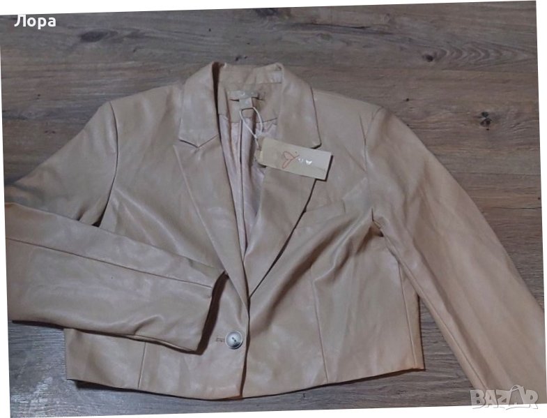 Ново дамско сако от мека еко кожа. Закупено за 50 лв. Размери от мишница до мишница 53 см. От рамо до рамо 44 см. Дължина на ръкава 63 см. Дължина на сакото 46 см. Модела е къс.