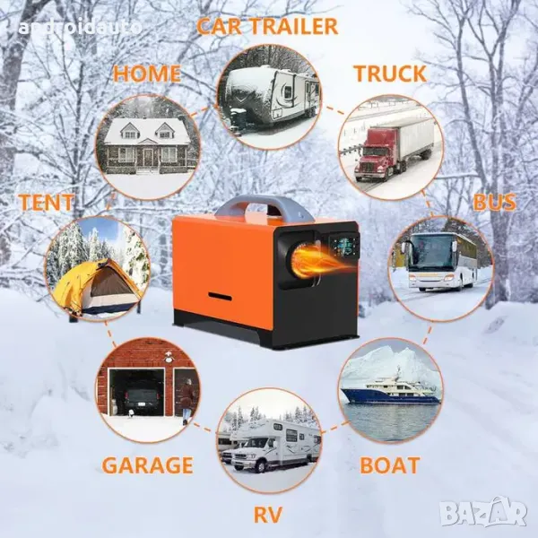дизелова печка/отоплител с мощност от 8KW, предлага широко приложение за отопление на магазини, складови помещения, гаражи, кемпери, каравани, камиони, кораби